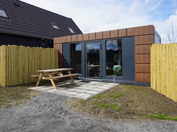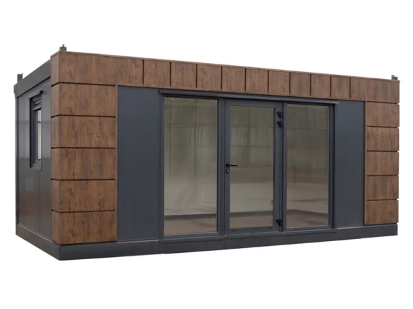 Le chalet de jardin habitable Helsinki se distingue par son design isolé et sa finition élégante en panneaux composites imitation bois, qui allie une esthétique moderne à une ambiance chaleureuse et accueillante. En termes simples, c’est un espace de travail portable à la fois fonctionnel (grâce à l’isolation) et attrayant visuellement (avec son extérieur imitation bois), idéal pour un aménagement de bureau confortable et contemporain.