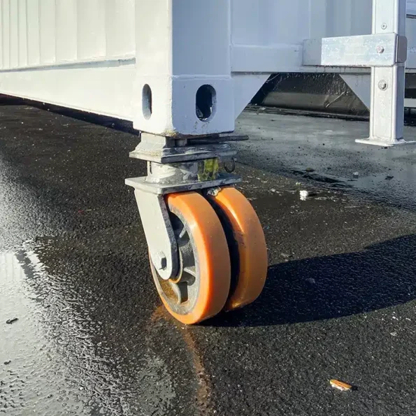 Ce kit de roulettes pour conteneur, composé de quatre roues robustes, est parfaitement adapté pour être installé sur les quatre coins ISO. Avec des roues de 150 mm de diamètre, nos roulettes pour container supportent une utilisation intensive et garantissent une mobilité aisée.